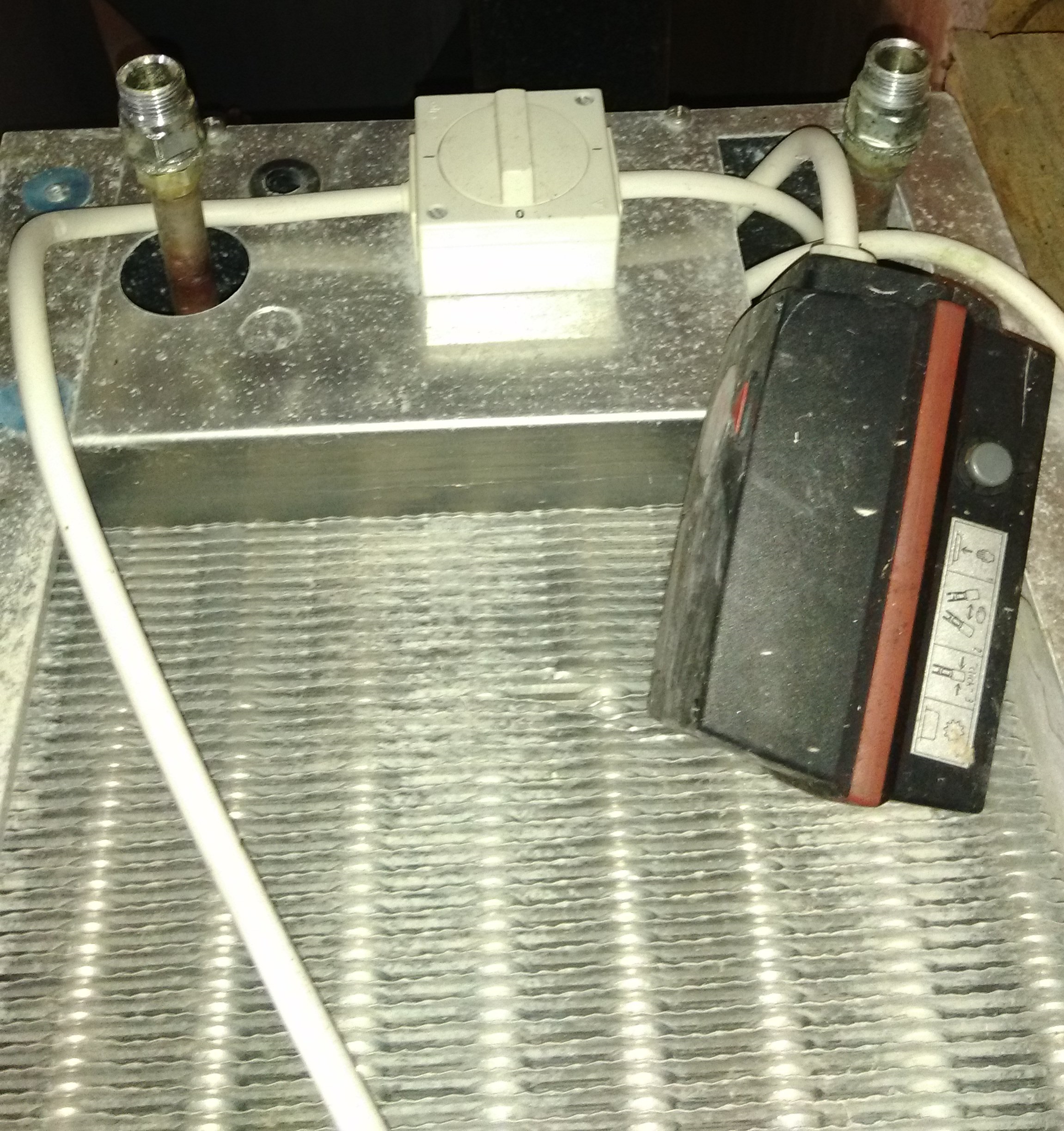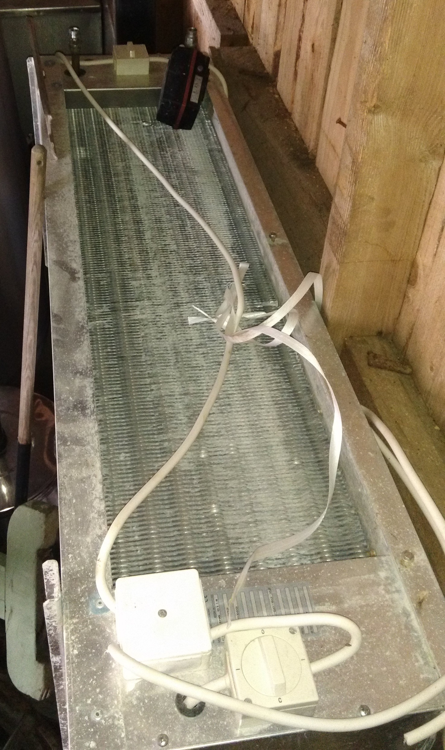 135 cm lång, 40 cm djup. Termostat och 3 fläktar, dragen el. För kylrum, ansluts till glykolsystem. Pris: 10 000 kr
